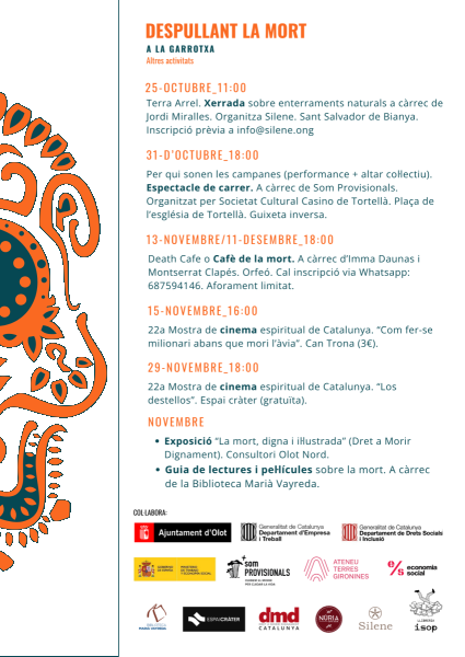 El programa també fa altaveu d’altres iniciatives de la comarca que comparteixen la mateixa temàtica i mirada reflexiva. Aquestes activitats complementàries amplien la mirada del cicle i donen veu a altres iniciatives locals que volen normalitzar la conversa sobre la mort com una part necessària de la vida comunitària.