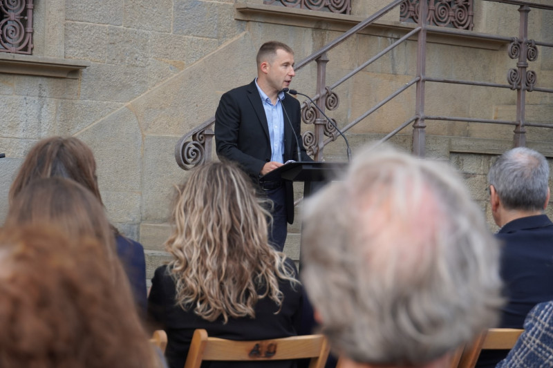 El parlament del regidor de Cultura i Educació d’Olot, Josep Quintana, ha estat l’encarregat d’iniciar l’acte de col·locació de les llambordes Stolpersteine a Olot. Junt amb el responsable del PEHOC i membre del grup de recerca del projecte "Els garrotxins als camps nazis", Albert Planas, han destacat la importància d’aquest record permanent a les víctimes de la deportació nazi, abans de la intervenció d’Estel Estartús, familiar del deportat Lluís Soy.