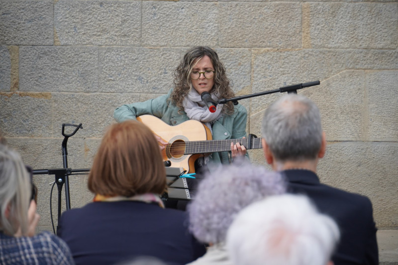 La interpretació musical a càrrec de Laura Plasencia amb la peça Bella ciao ha clausurat l’acte de col·locació a Olot de 6 llambordes Stolpersteine en commemoració als garrotxins deportats als camps de concentració nazi.