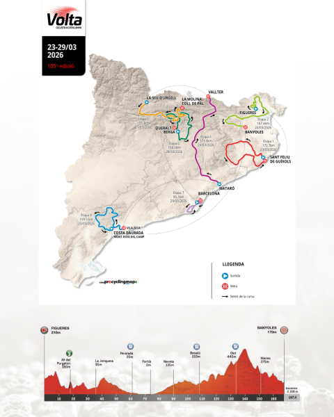 La segona etapa de la Volta Ciclista a Catalunya sortirà de Figueres i arribarà a Banyoles passant per Olot. Aquesta temporada 2026, la 105a edició masculina de la Volta es disputarà entre els dies 23 i 29 de març amb la participació anunciada d’una important llista de grans estrelles del ciclisme mundial encapçalada per Jonas Vingegaard, Remco Evenepoel, Joao Almeida i Tom Pidcock, entre altres.