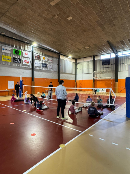 Durant el matí s'han delimitat 3 zones d'esport adaptat on els alumnes han anat passant cada 15 minuts de forma rotativa per practicar tenis, bàsquet i vòlei adaptat.