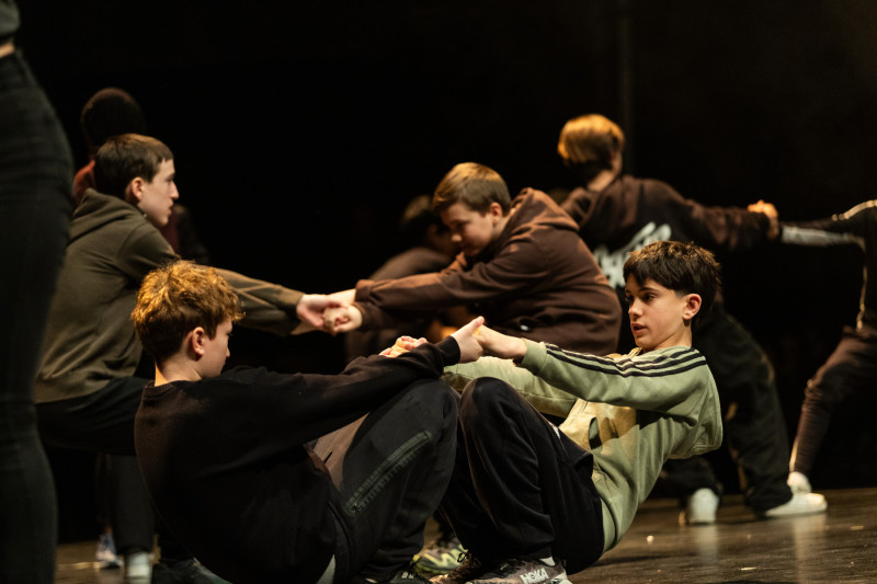 Els participants són l’alumnat de 2n d’ESO de l’Institut Bosc de la Coma, l’Institut-Escola Greda, l’Institut-Escola Pia i l’Institut-Escola Cor de Maria. La coreografia, obra de Claudia Moreno i Noemí Ventura, explora com ens percebem i ens relacionem amb els altres a través del moviment. La peça posa el focus en la mirada pròpia i en la de l’altre, convertint el cos en una eina de comunicació, expressió i construcció col·lectiva.