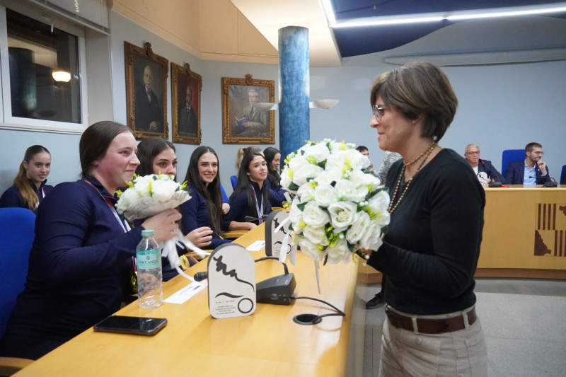 Les jugadores i tot l’equip tècnic ha rebut un obsequi de part de l’Ajuntament d’Olot per aquest nou èxit i, posteriorment, han signat al Llibre d’Honor de la Ciutat; una signatura que arriba un any després que les esportistes deixessin el seu record després d’assolir el 15è títol mundial amb ‘Mulla’t’ a Rimini.