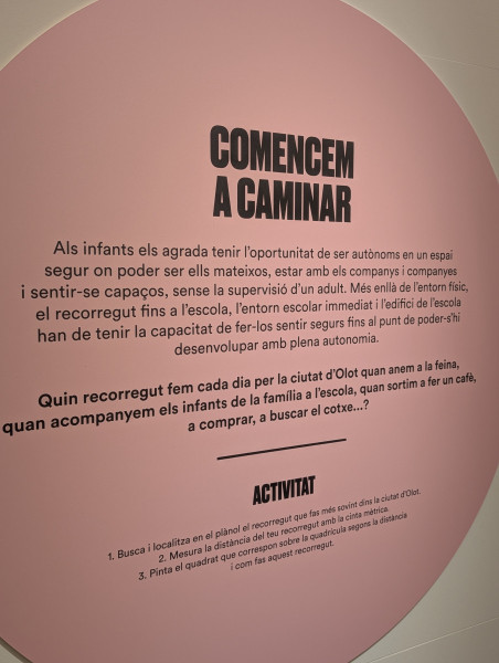 L’exposició recull aquest material i el presenta com un espai obert a la reflexió i al redescobriment dels entorns quotidians. El muntatge proposa continuar el camí iniciat a les aules, aquesta vegada implicant el conjunt de la ciutadania. En aquest sentit, es planteja com una invitació a revisar les pròpies experiències urbanes i a prendre consciència del valor dels recorreguts diaris com a espais de convivència, salut i relació.