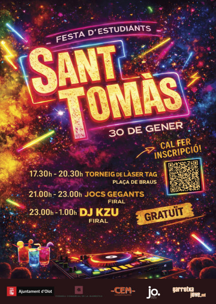 La festa dels estudiants per a joves d’ESO I POSTOBLIGATORI se celebrarà aquest any el divendres 30 de gener des de les 17.30 fins a la 1 de la nit.