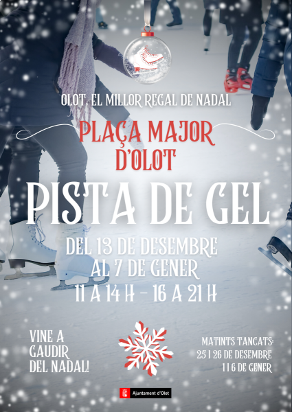 Des del 13 de desembre i fins al 7 de gener, tothom qui vulgui podrà patinar en aquesta instal·lació impulsada per l’Ajuntament d’Olot i DinàmiG, que ja s’ha convertit en una tradició imprescindible del calendari nadalenc olotí que s’ha consolidat com una de les propostes estrella del programa Olot Temps de Nadal. L’any passat va superar els 10.000 patinadors.