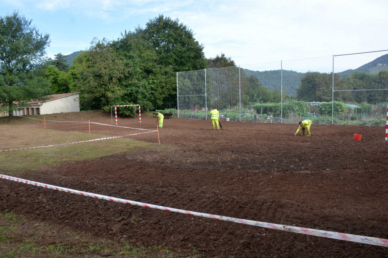 La setmana passada han finalitzat els treballs de construcció de la primera fase de l’àrea de joc d’ús polivalent del sector de La Faja. L’actuació ha permès crear un nou espai d’uns 25 metres de llargada amb dues porteries, una xarxa que separa la zona de jocs dels horts i bancs a la zona planera de prat. Els treballs han consistit en la desbrossada del terreny, el fresatge, la instal·lació de porteries fixes i la col·locació de bancs de fusta.