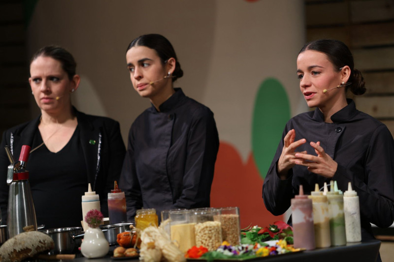 Aquest dissabte, per l’Aula de Cuina hi passaran: Clara, Martina i Carlota Puigvert Puigdevall (Les Cols, Olot)** amb el naturalista i geògraf Miquel Macias; Susana Aragón, amb Lluís Fisas (Can Fisas, Parc Agrari del Baix Llobregat); Martín Comamala (539 Plats Forts, Puigcerdà) amb Carles Herrero (Granja Can Nadal, Sant Quintí de Mediona); Isaac Jover i Sergi Fàbregas (El Brot de Vilavenut) amb Albert Remus (Ca l’Obaga, Cassà de la Selva); Miquel Alongina (La Moixina, Olot) amb Joan Orri (Mas Martinyà, Santa Pau), productor de Fesols de Santa Pau; i Maria Nicolau al costat de Pep Salsetes.