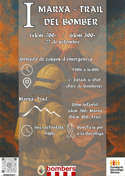 Entre les diverses activitats previstes, aquest dissabte 27 de setembre han organitzat la 1a marxa-trail dels Bombers. Sortirà a les 9 h del matí del Parc de Bombers d’Olot amb la modalitat de cursa infantil. D’aquesta manera, els més petits recorreran 150 metres davant de les instal·lacions.