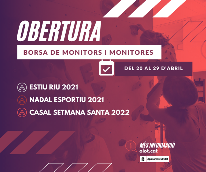 Des d'avui i fins al dijous 29 d’abril, totes les persones que compleixin els requisits poden presentar les seves candidatures per a la borsa de treball de la convocatòria de monitors i monitores per a la campanya d’activitats Estiu Riu 2021 però també per a les campanyes de Nadal 2021 i Setmana Santa 2022.