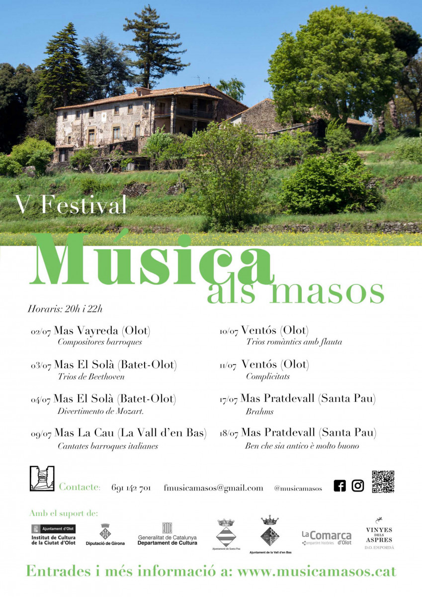 S’han programat vuit concerts entre el 2 i el 18 de juliol. Les actuacions tindran lloc en espais singulars com el Mas Vayreda, El Ventós, Mas El Solà, Mas Pratdevall o La Cau.