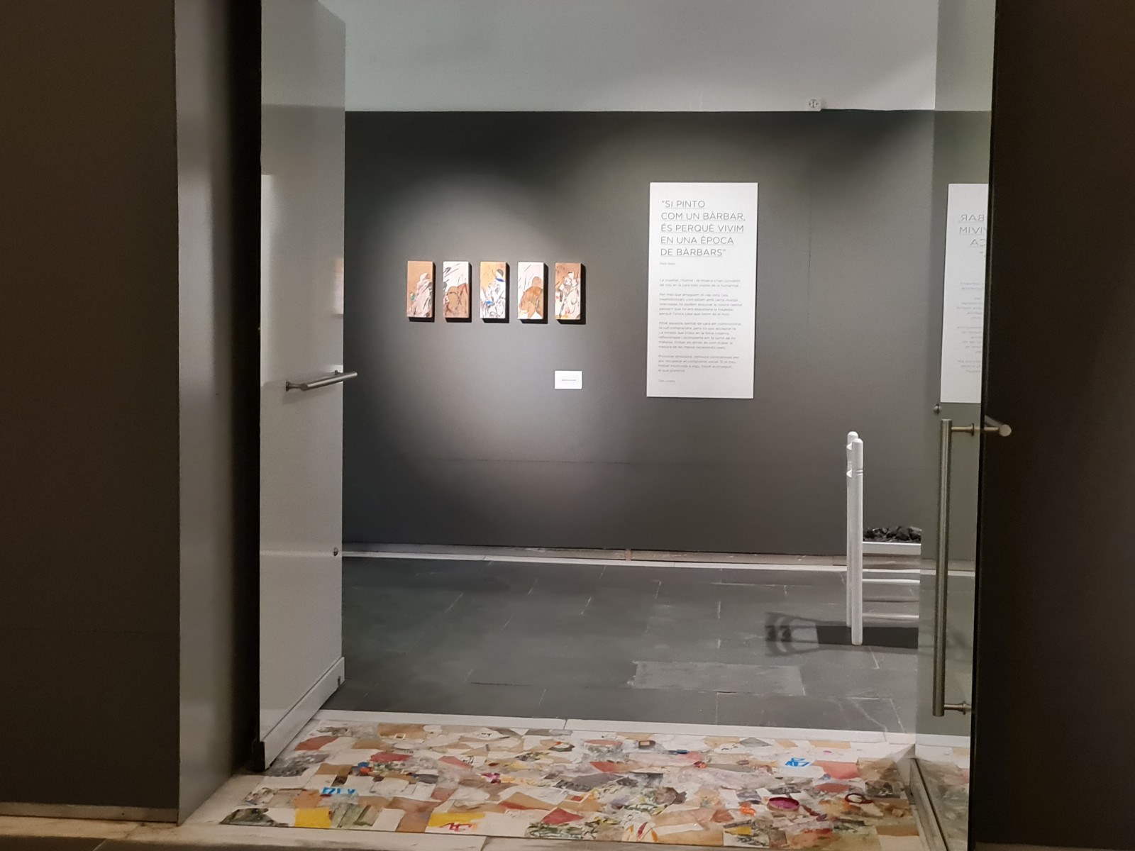 Un cop dins l’exposició, el visitant hi trobarà les peces que l’artista ha creat durant la pandèmia. Es tracta de treballs pictòrics amb collage que parlen de com amb el pas del temps, els records es van desdibuixant. Per això, les peces han perdut el color i la forma i estan en procés de desaparèixer.