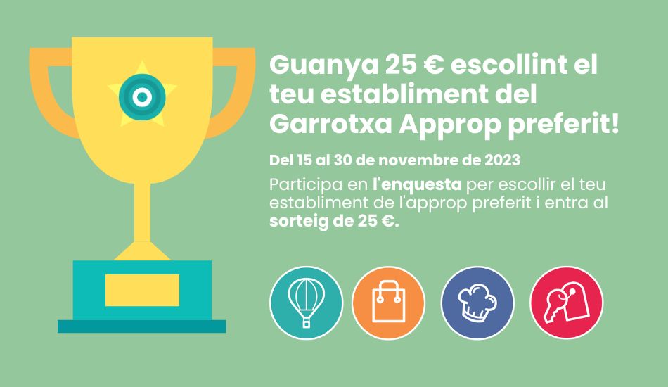 Per premiar-los, cal tota l’ajuda possible dels protagonistes de l’aplicació: els usuaris. Entre tots els proppers que responguin l’enquesta i escullin el seu establiment preferit, se sortejarà un val de 25 € per gastar a través del Garrotxa Approp. L’enquesta estarà disponible fins al 30 de novembre.
